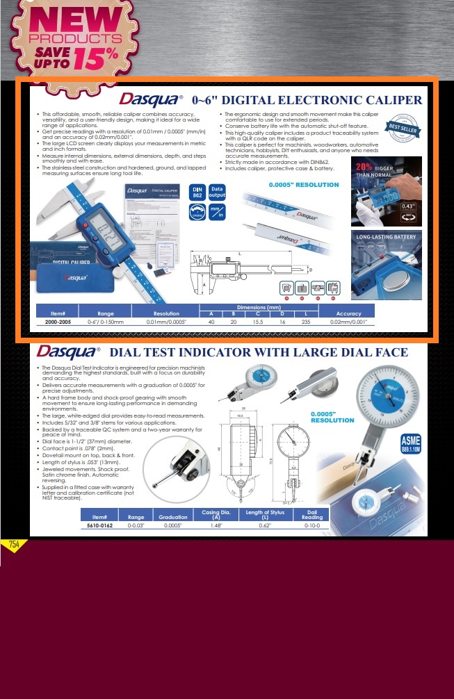 Description | DASQUA 150MM/6" DIGITAL CALIPER |